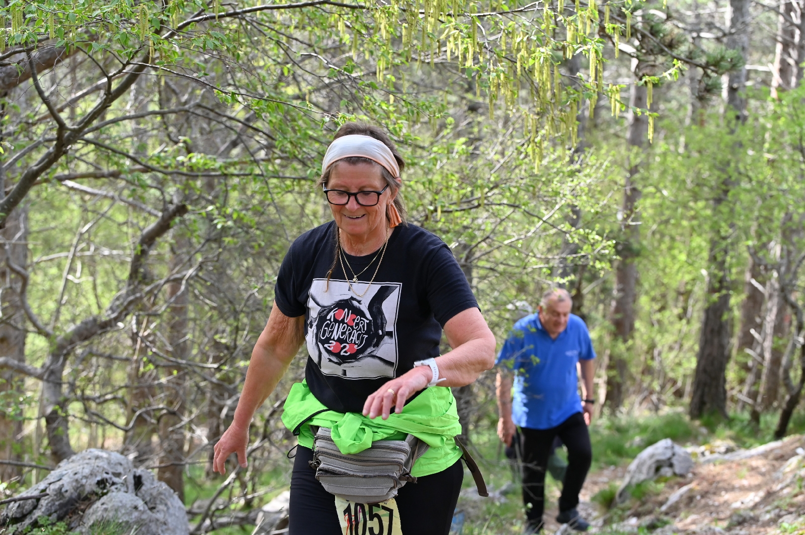 Mal pokričim, vidim kar nekaj vipavskih dresov in grem proti Šmarjetni. Po asfaltu skoraj do vrha. Malo prej zagledam ogromno shojeno stezo.. Agha, tu bo najbrž bližnca. In grem jast po njej. Pejdi po najbolj široki, za ziher, ja, sej grem... in hodim in kar hkrati se že spuščam. Dohitim ene dve bejbe, jih prašam, kdaj pej bo vrh Šmarjetne gore in uni velik hotel, k se ga vidi od spodaj gor?